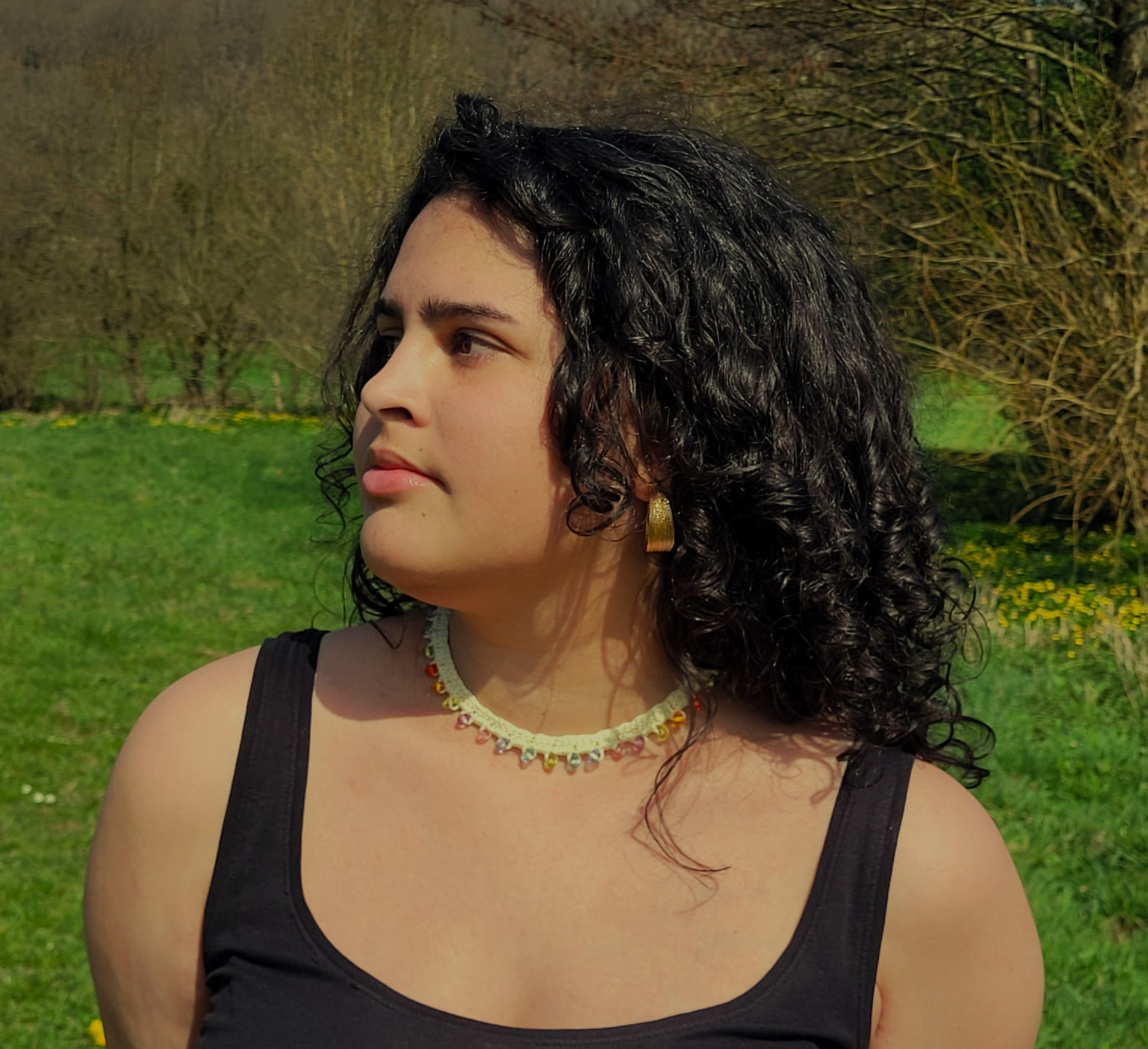 matière : coton, perle multicolore, (fermoir et chaînette en acier inoxydable)